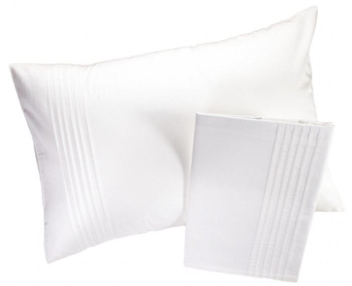 Комплект белоснежных наволочек 50х70 см из люкс-сатина (100% хлопок). Наволочки украшены стильными защипами и закрываются на клапан. В комплекте 2 наволочки; упакованы в пакет из пвх с фирменным логотипом.